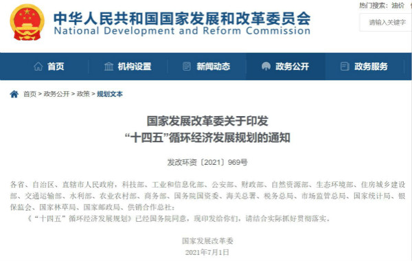近日,國(guó)家發(fā)展改革委印發(fā)了《“十四五”循環(huán)經(jīng)濟(jì)發(fā)展規(guī)劃》(以下簡(jiǎn)稱《規(guī)劃》),著重部署了今后一段時(shí)期我國(guó)循環(huán)經(jīng)濟(jì)發(fā)展的總體思路、主要任務(wù)和工程行動(dòng)以及保障措施,指明了“十四五”循環(huán)經(jīng)濟(jì)發(fā)展路徑,這一重要戰(zhàn)略的出臺(tái),迅速引起了社會(huì)和媒體的高度關(guān)注。
