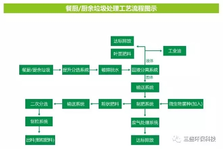 為了實現廚余垃圾就地就近式集中處理,達到廚余垃圾減量化、資源化、無害化處理的目標。根據廚余垃圾本質的特點及處理工藝的對比選取,采用微生物菌種好氧發酵技術處理廚余垃圾,結合三盛環保處理廚余垃圾的技術工藝,將廚余垃圾資源化處理再利用。