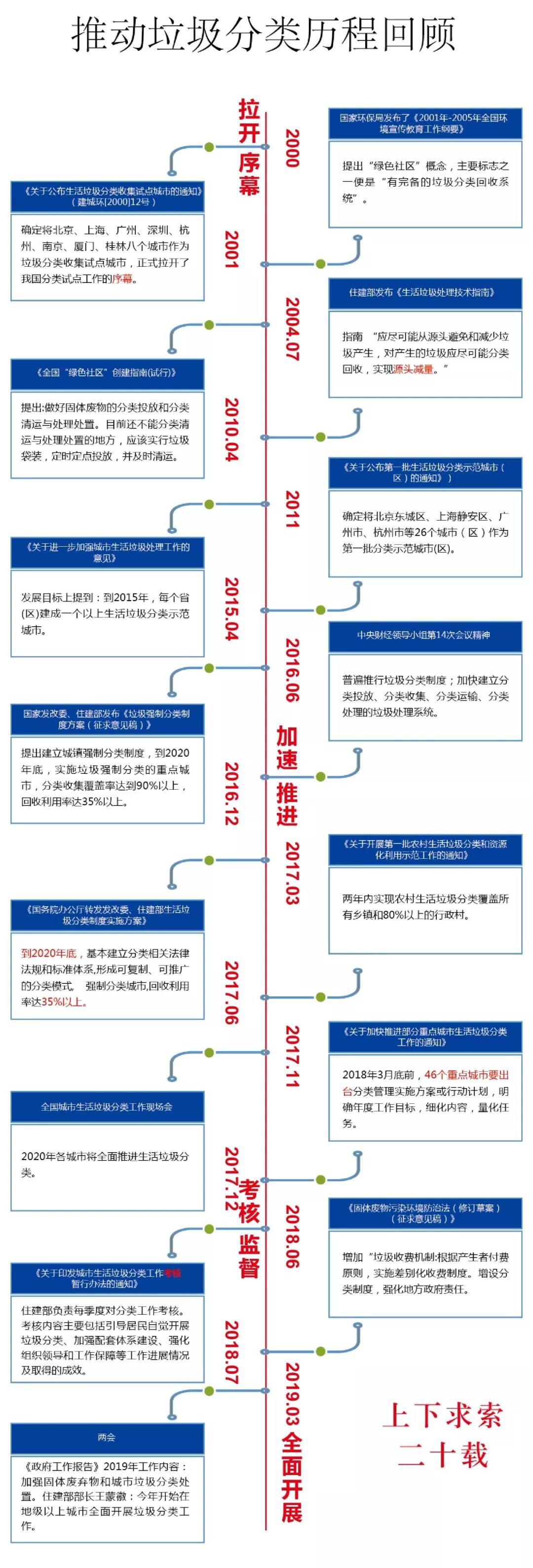 2017年,國家發(fā)改委、住建部發(fā)布《生活垃圾分類制度實施方案》,要求在全國46個城市先行實施生活垃圾強制分類,到2020年底,生活垃圾回收利用率達到35%以上。